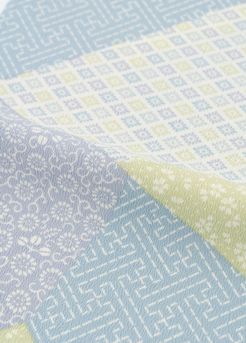 【半幅帯】きものやまとベーシック 桐生合繊半幅帯 華七宝 白鼠