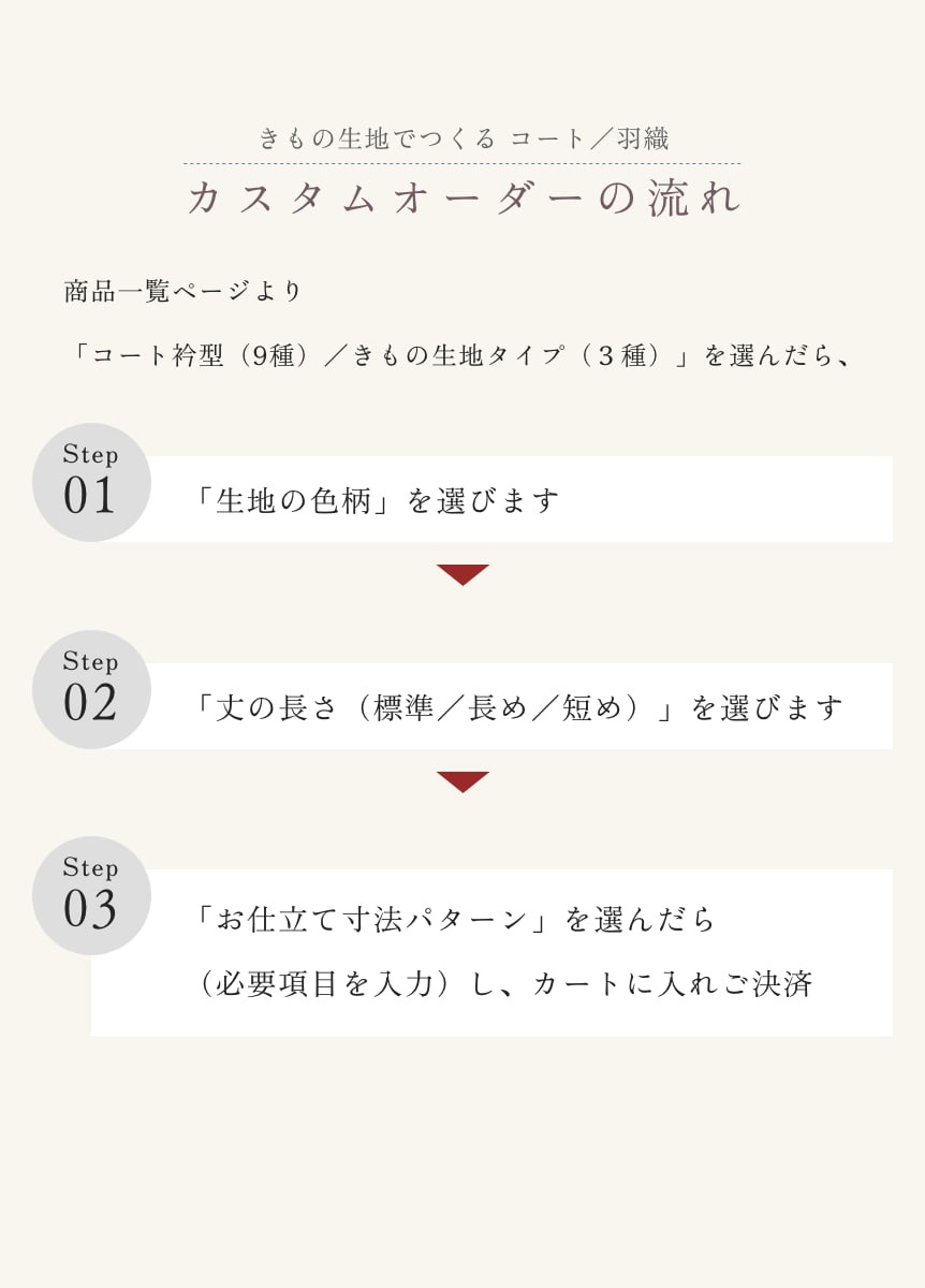 ②お好みの「丈の長さ」をお選びください。