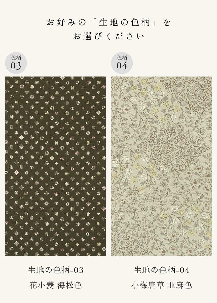 ①お好みの「生地の色柄」をお選びください。