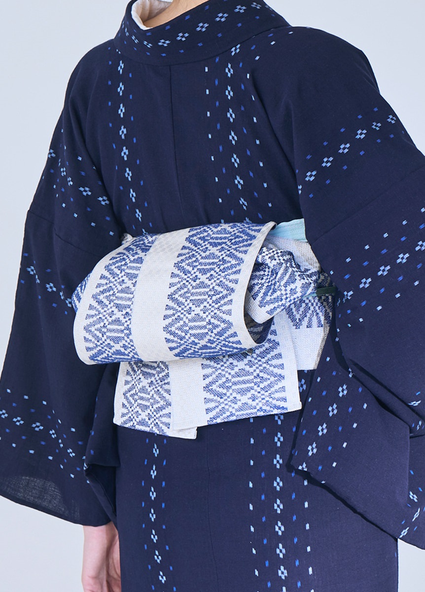 「麻絹四寸単衣帯 一本独鈷 白×青(ご予約受注品)」は販売期間前です。