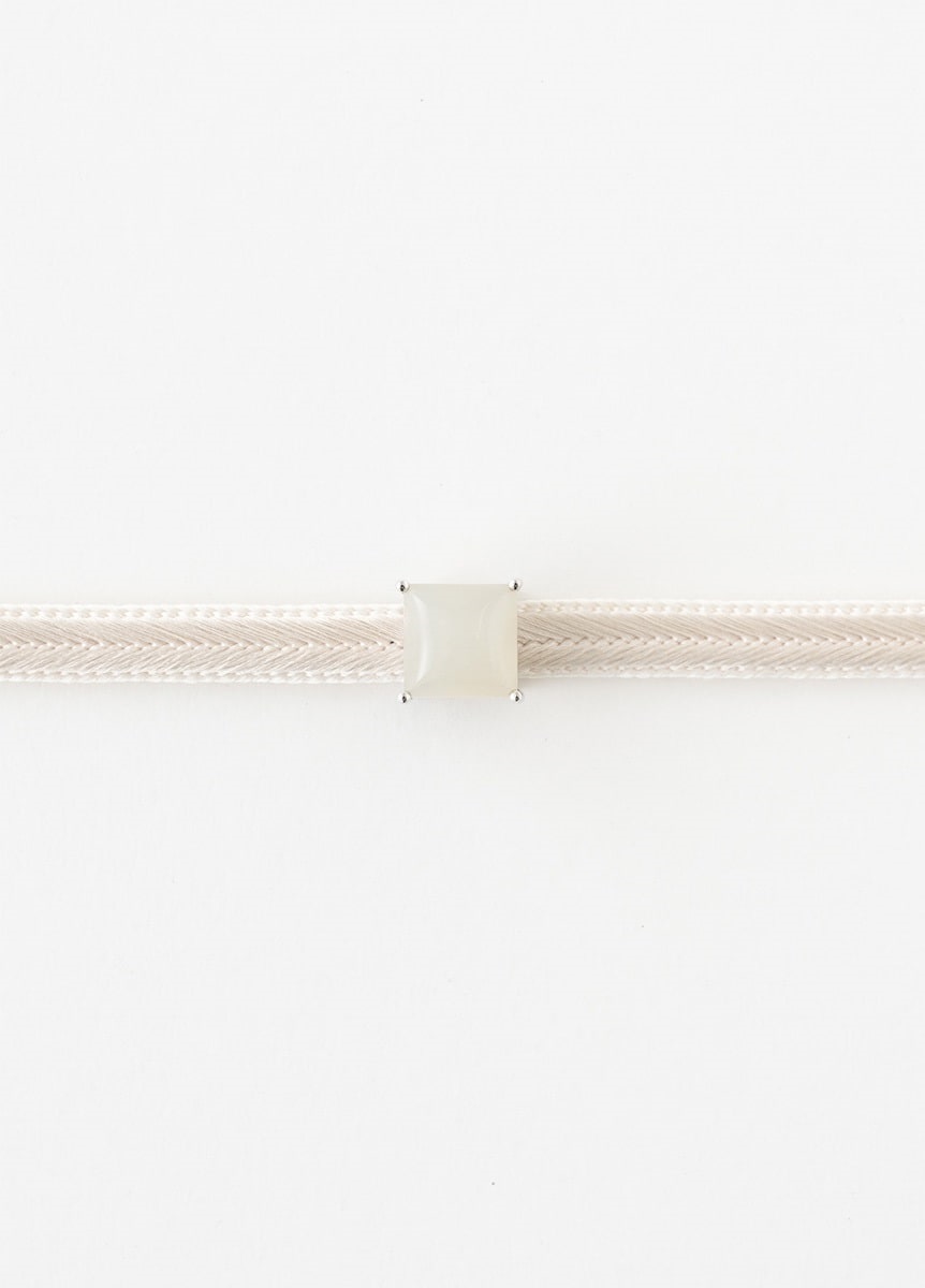 さりげなく着物と馴染み、そしてキラリと帯元で光るアクセントとして、アクセサリーのように楽しんでいただきたいアイテムです。ミルキーホワイトがやさしく輝き、カジュアルからフォーマルまで幅広く合わせていただけます。二分紐や三分紐を通してお使いください。