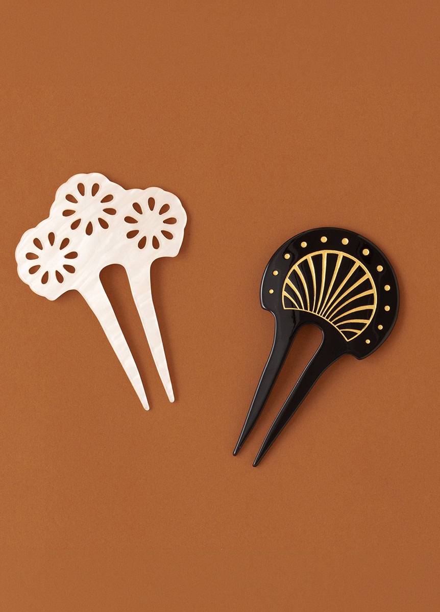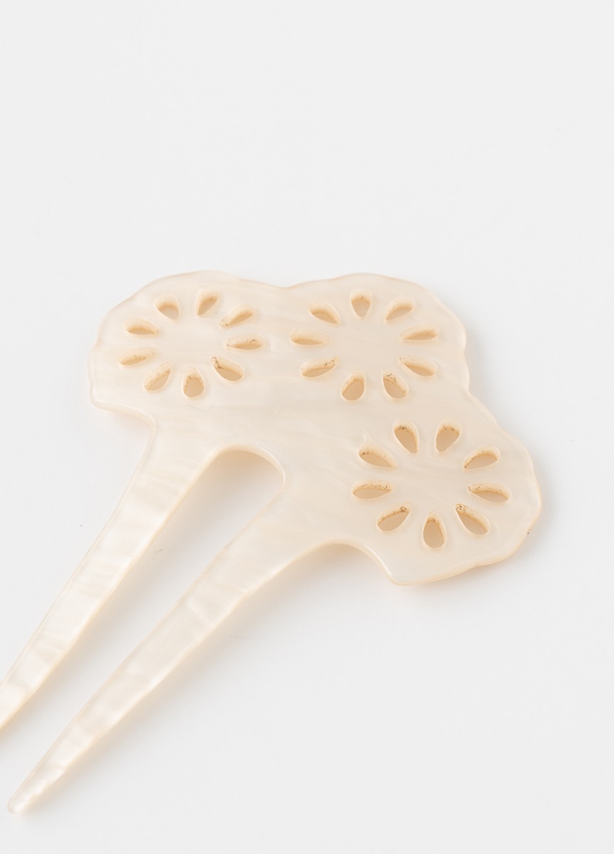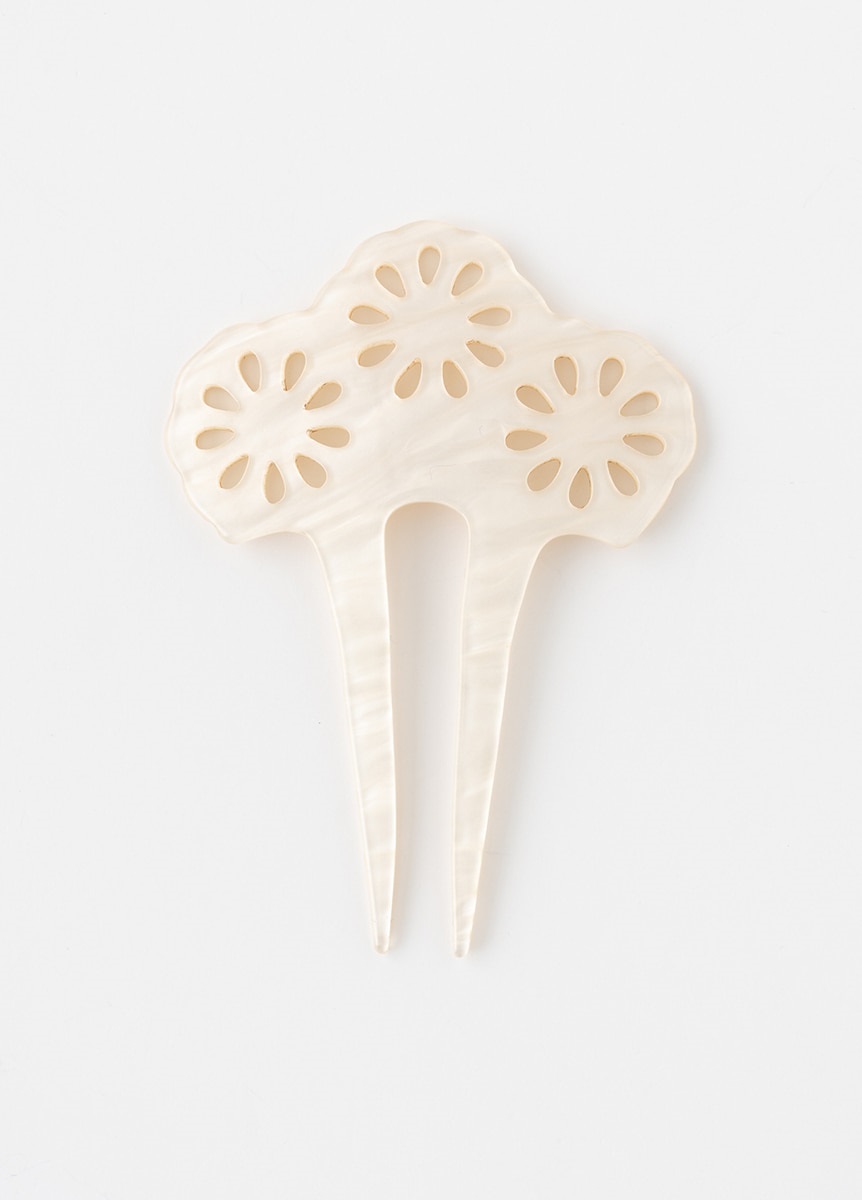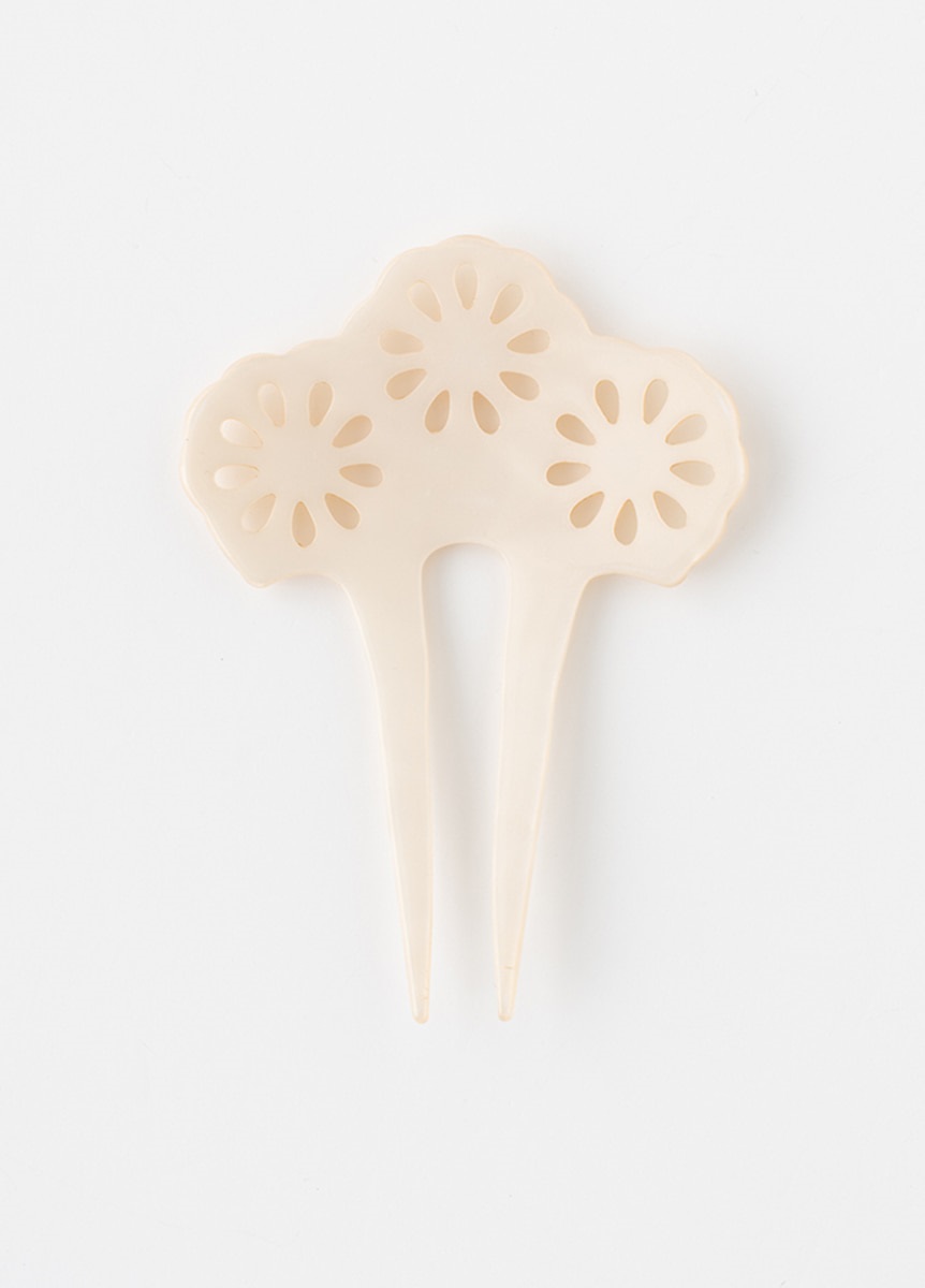 様々な髪型の流行により装身具が多様化した江戸時代。はなびをイメージしたデザインをあしらったかんざしです。小さく弾ける線香花火のようなイメージでデザインしました。髪色に映える白の配色で、夏らしさをプラスするアイテムです。