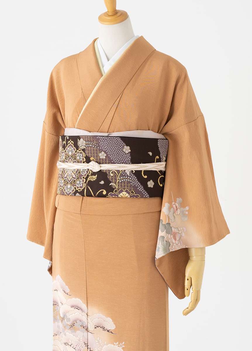 素材:【訪問着】正絹 【帯・小物】絹、ポリエステル、一部金属糸使用 【長襦袢】身頃/綿100% 裾・袖/ポリエステル100%