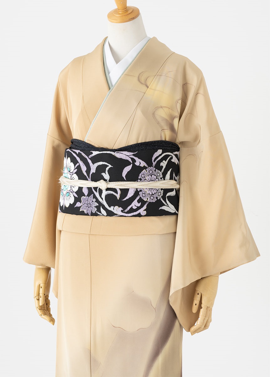 素材:【訪問着】正絹 【帯・小物】絹、ポリエステル、一部金属糸使用 【長襦袢】身頃/綿100% 裾・袖/ポリエステル100%