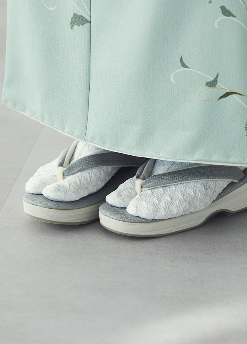 うららとは、春の空が晴れていて穏やかな様子のことを意味しています。そんな素敵な日に履いて着物を楽しんでいただきたい、という想いを込めました。