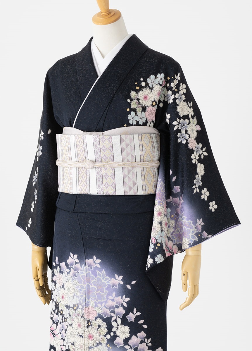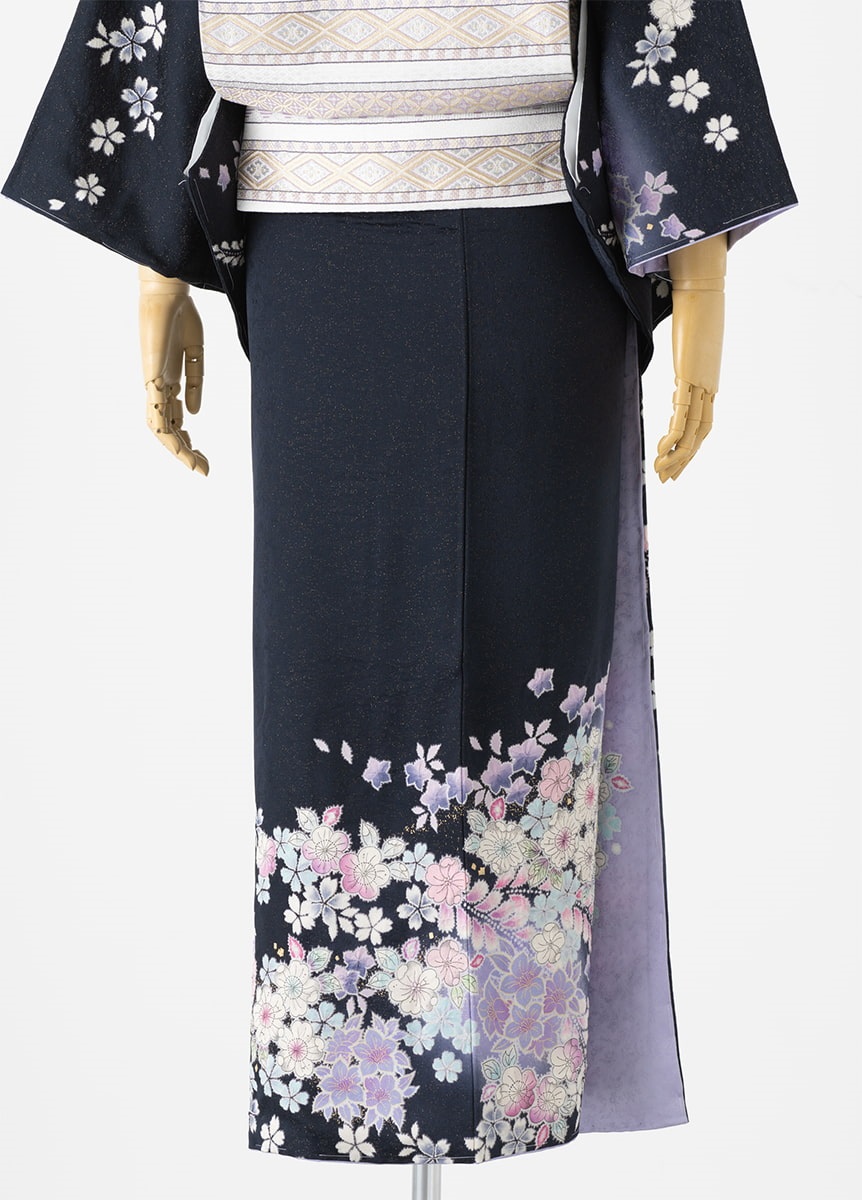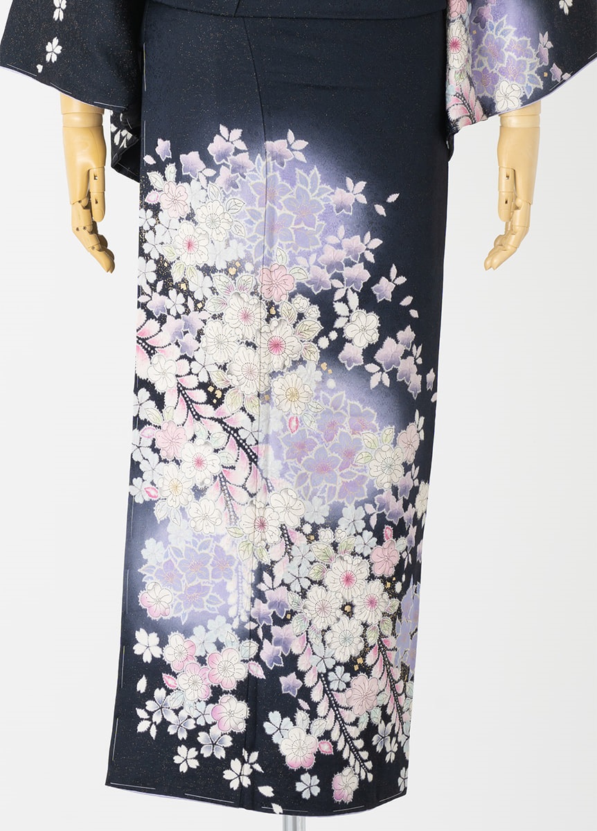 辻ヶ花(つじがはな)とは幻の花と言われ、室町時代から安土桃山時代に栄えた絞り染めの技法です。高度な絞り技法を複数組み合わせることで、絢爛豪華な文化を演出したと言われています。濃地に白く模様が華やかに浮き立つような花が幻想的な雰囲気を醸し出します。