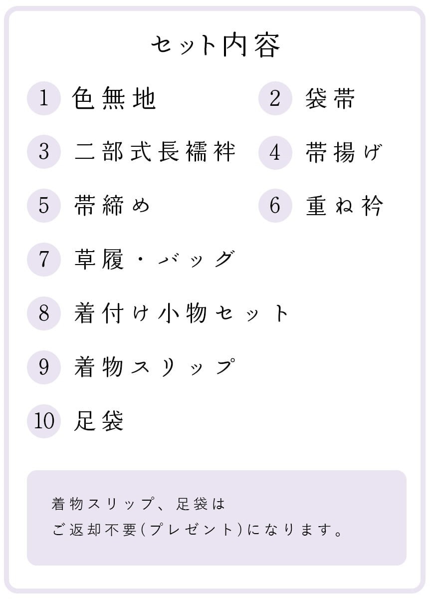 ・【要返却】の商品(⑧着付小物含む)はリユース品です。