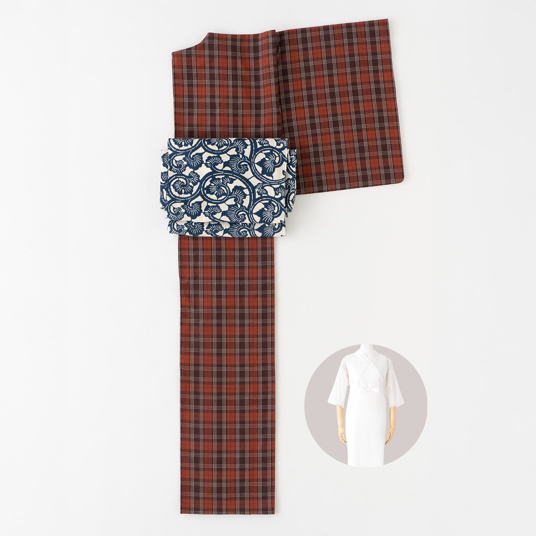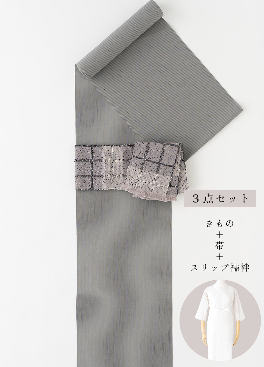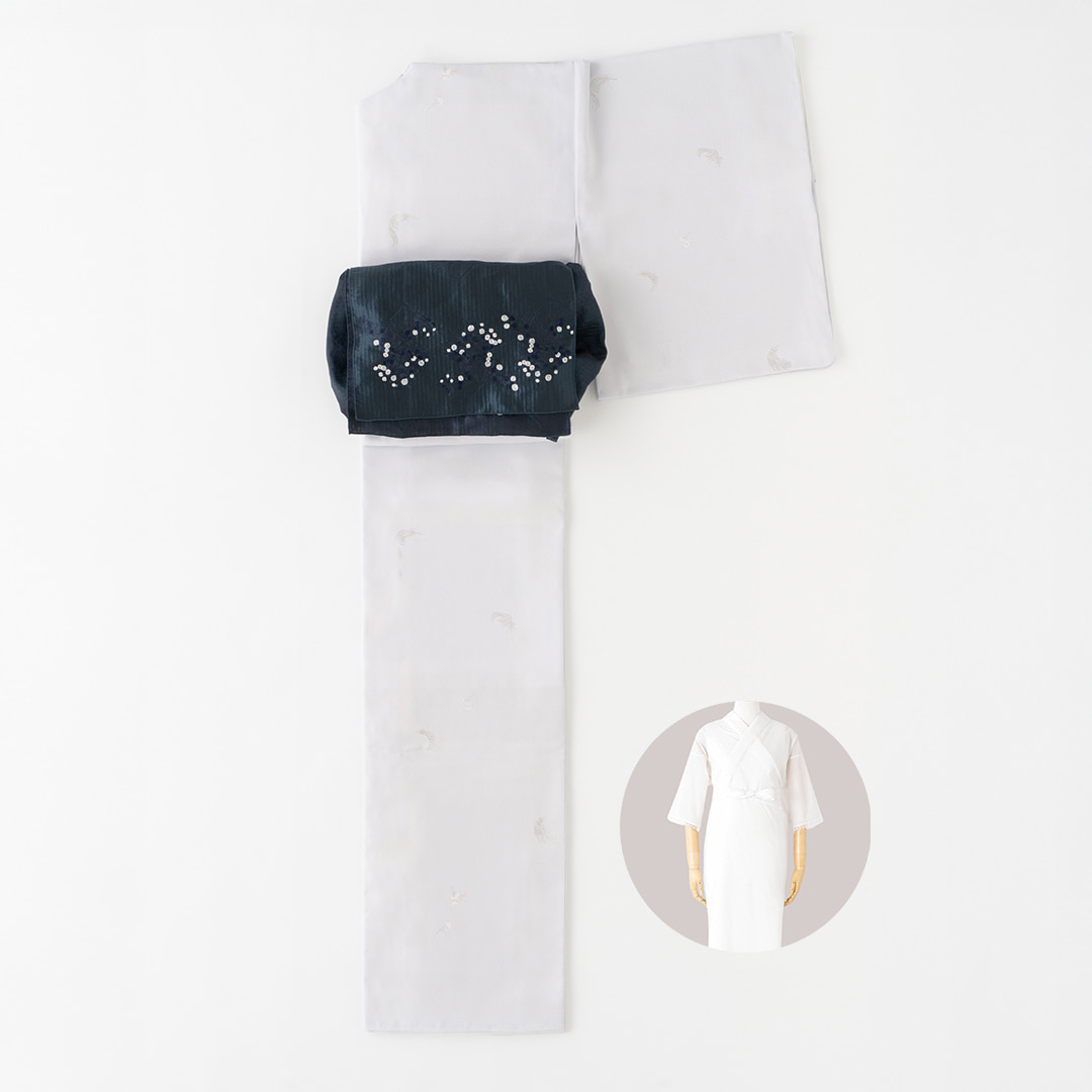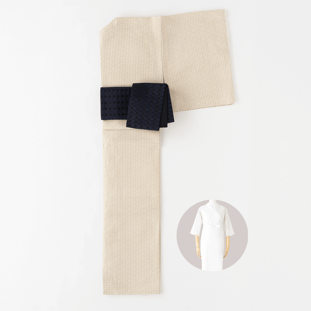 セットの帯は、ゆかたでも馴染みのある半巾帯やへこ帯で、ビギナーの方にも帯結びがしやすいのが嬉しいポイントです。