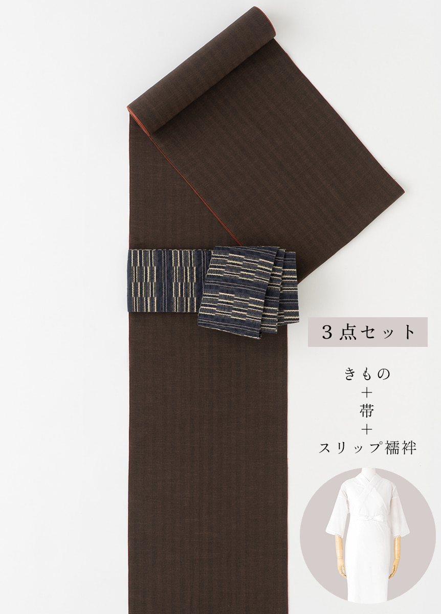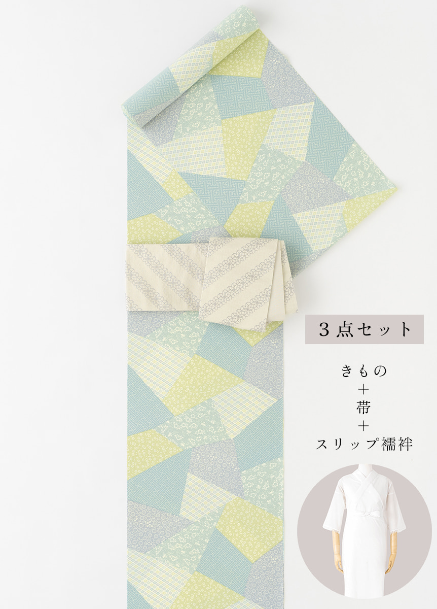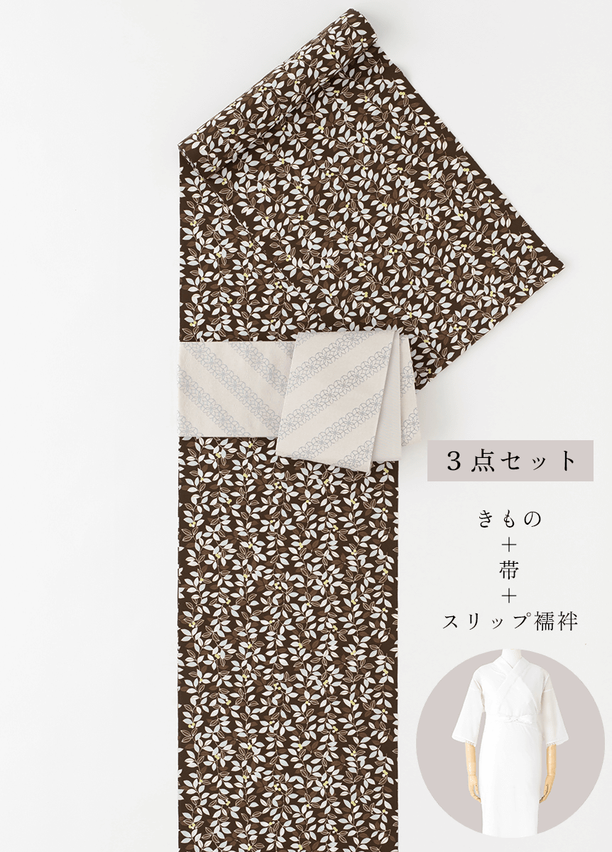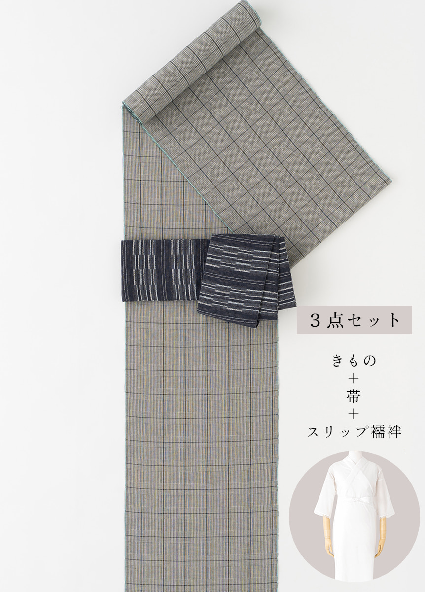 セットの帯は、ゆかたでも馴染みのある半巾帯やへこ帯で、ビギナーの方にも帯結びがしやすいのが嬉しいポイントです。