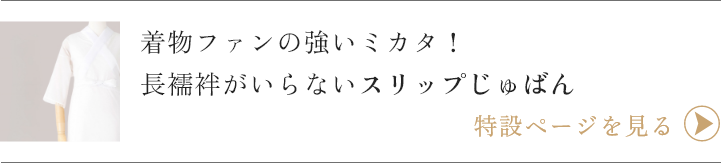 きものをもっと「気軽に・簡単に」着ていただけるアイテムとしてオリジナルで創作した簡易襦袢。着易さ・着心地・快適さを追求し、素材や袖口にもこだわっています。