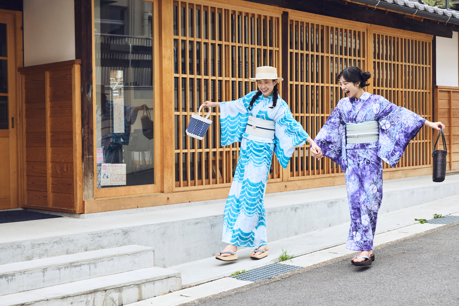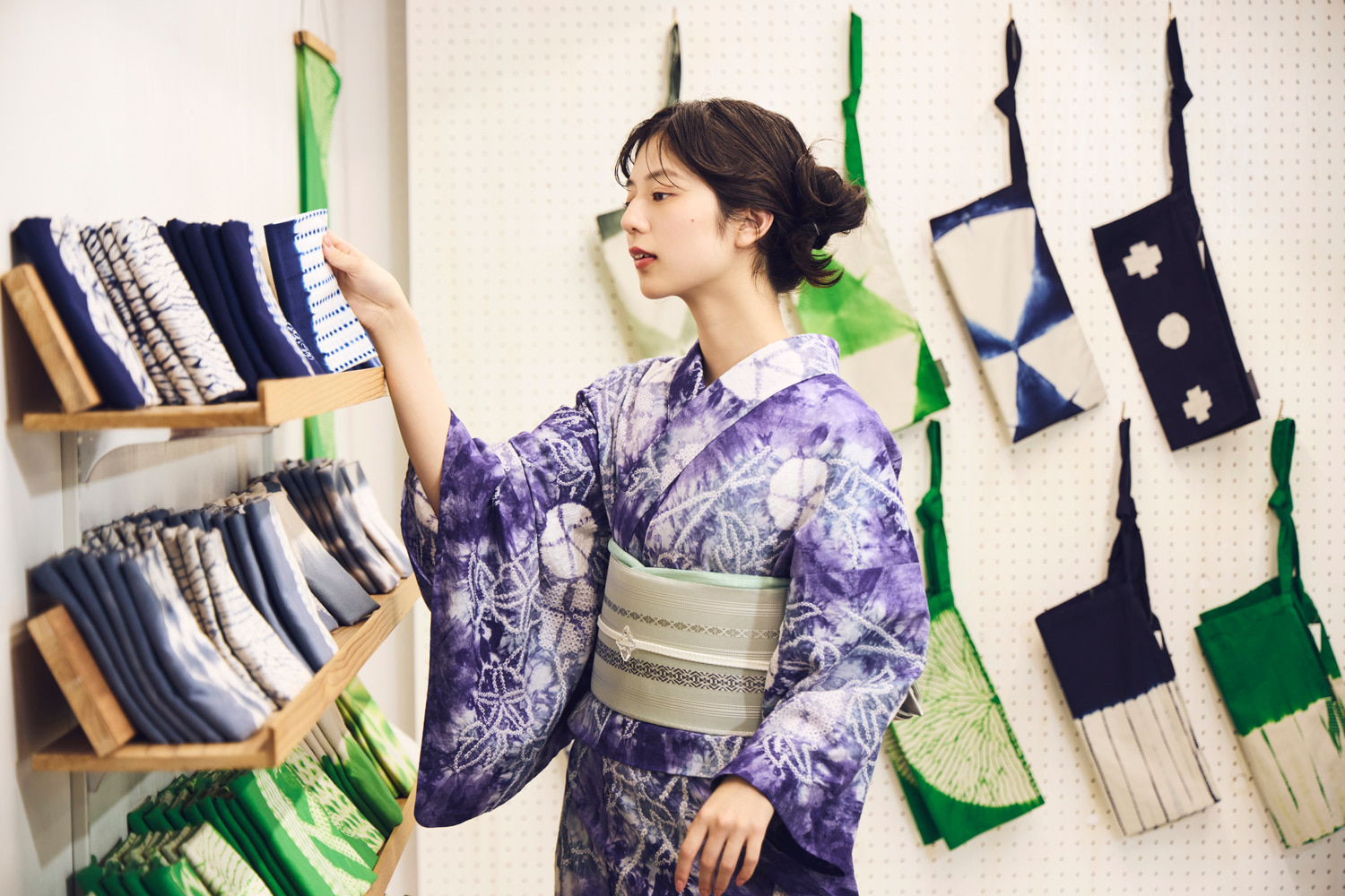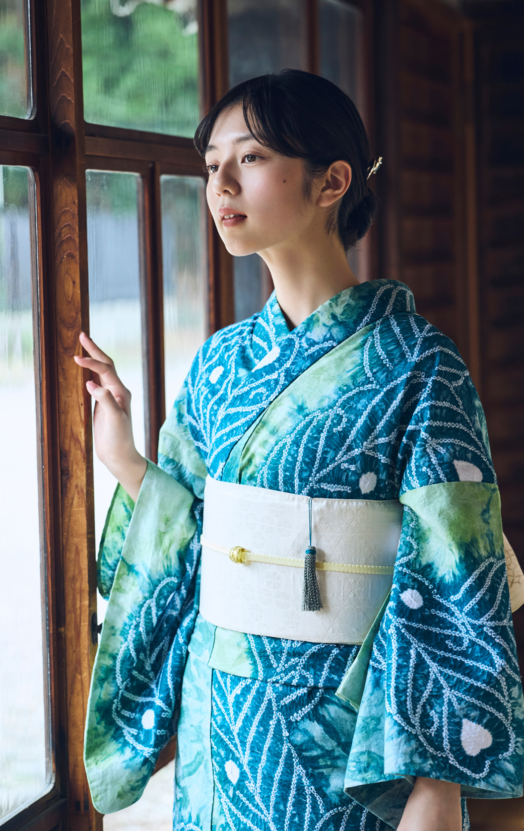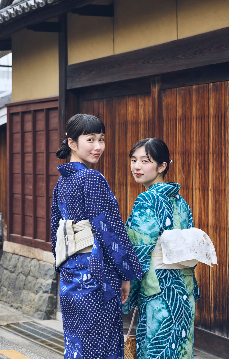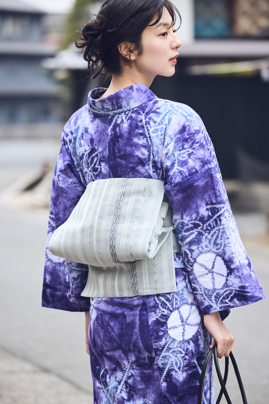 見た目の美しさと共に着心地の良さも魅力の絞りゆかた。絞りによって生まれる生地の凹凸が肌に張り付きにくく、軽やかで心地よい着心地に。色や柄の表現も豊かで、お気に入りの一枚を見つける楽しさがあります。