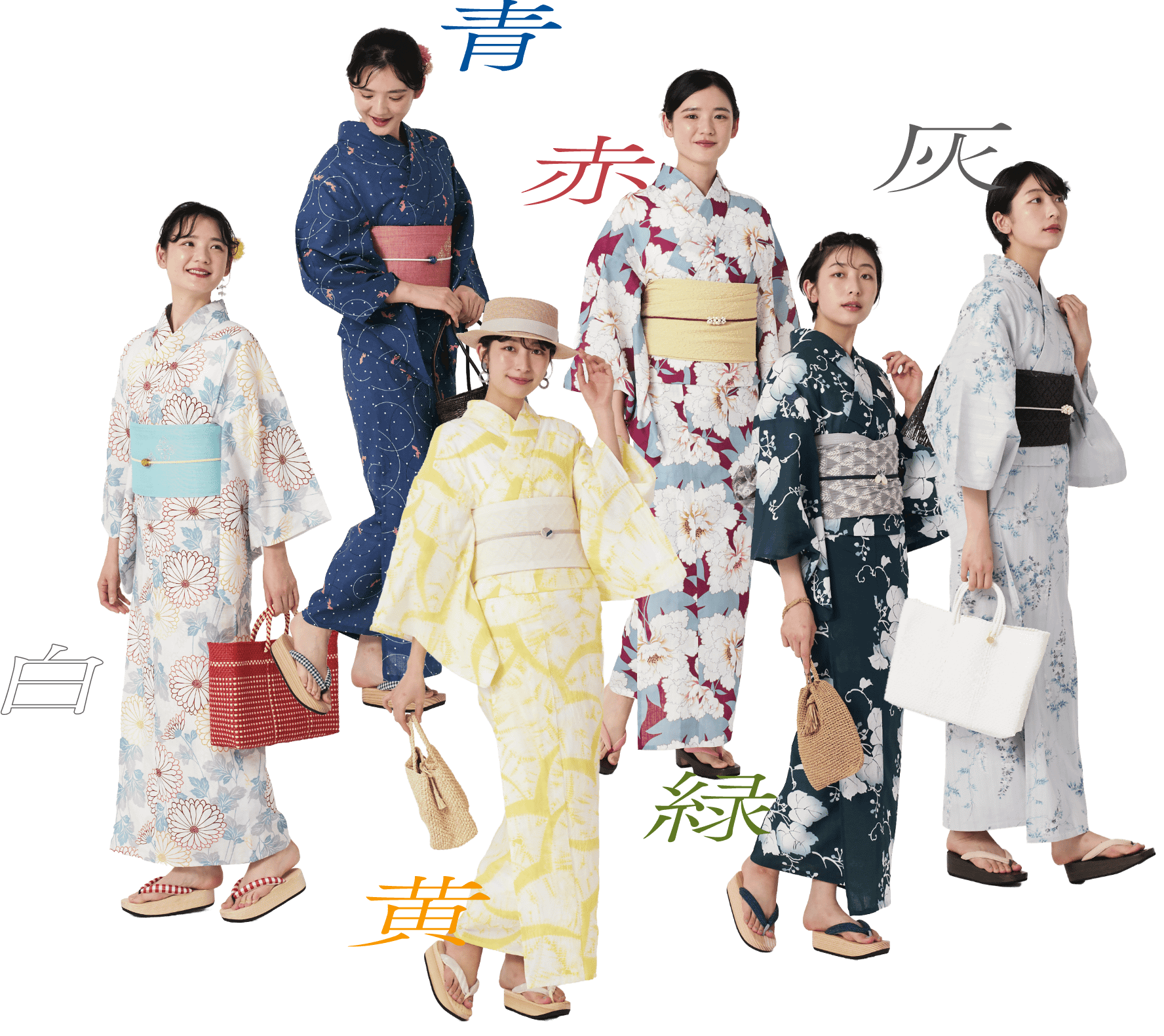 夏のゆかたは、もっと気ままに、 その時の気分で色を選べば、 いつもの街も少し違って見える。 青、赤、黄色、白、緑、灰色…。 さあ、今年はどの色で夏を楽しもう?